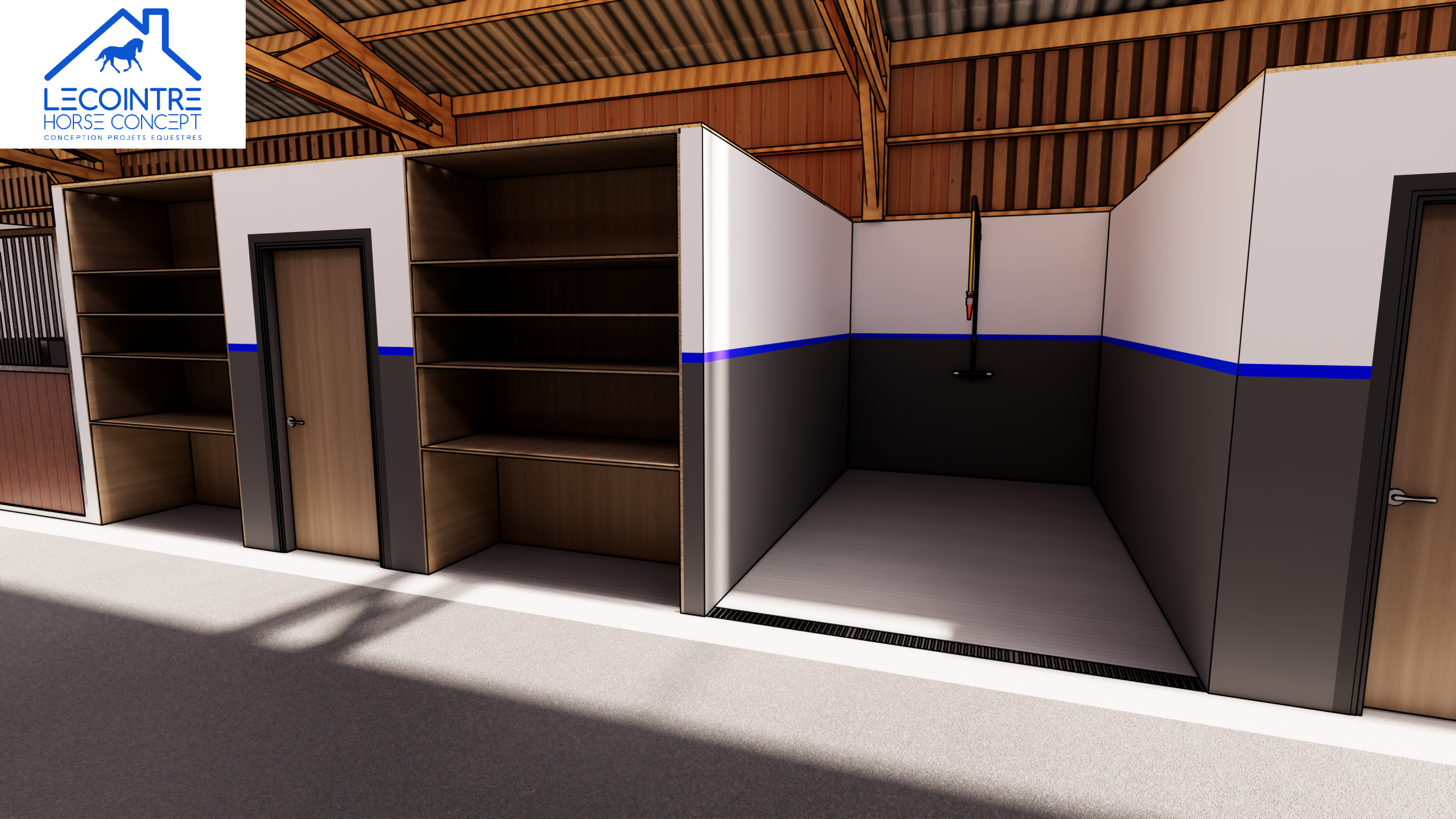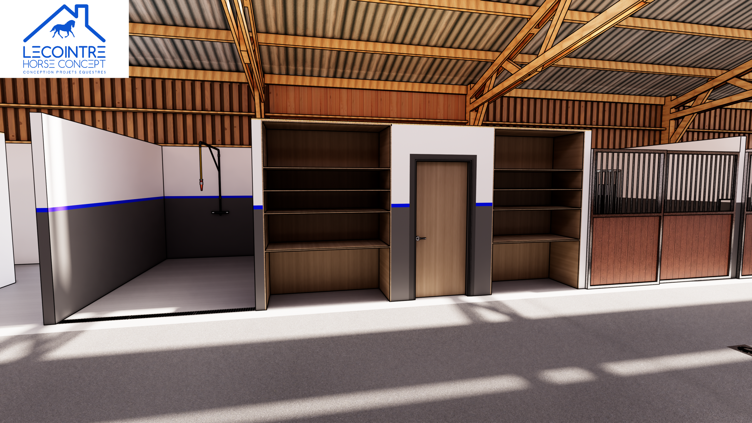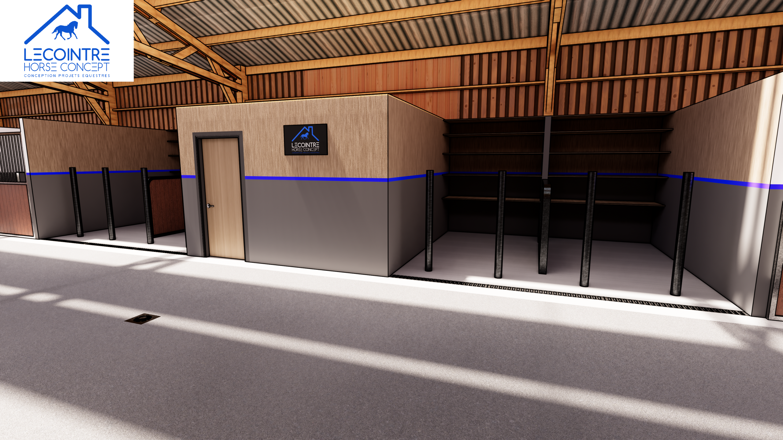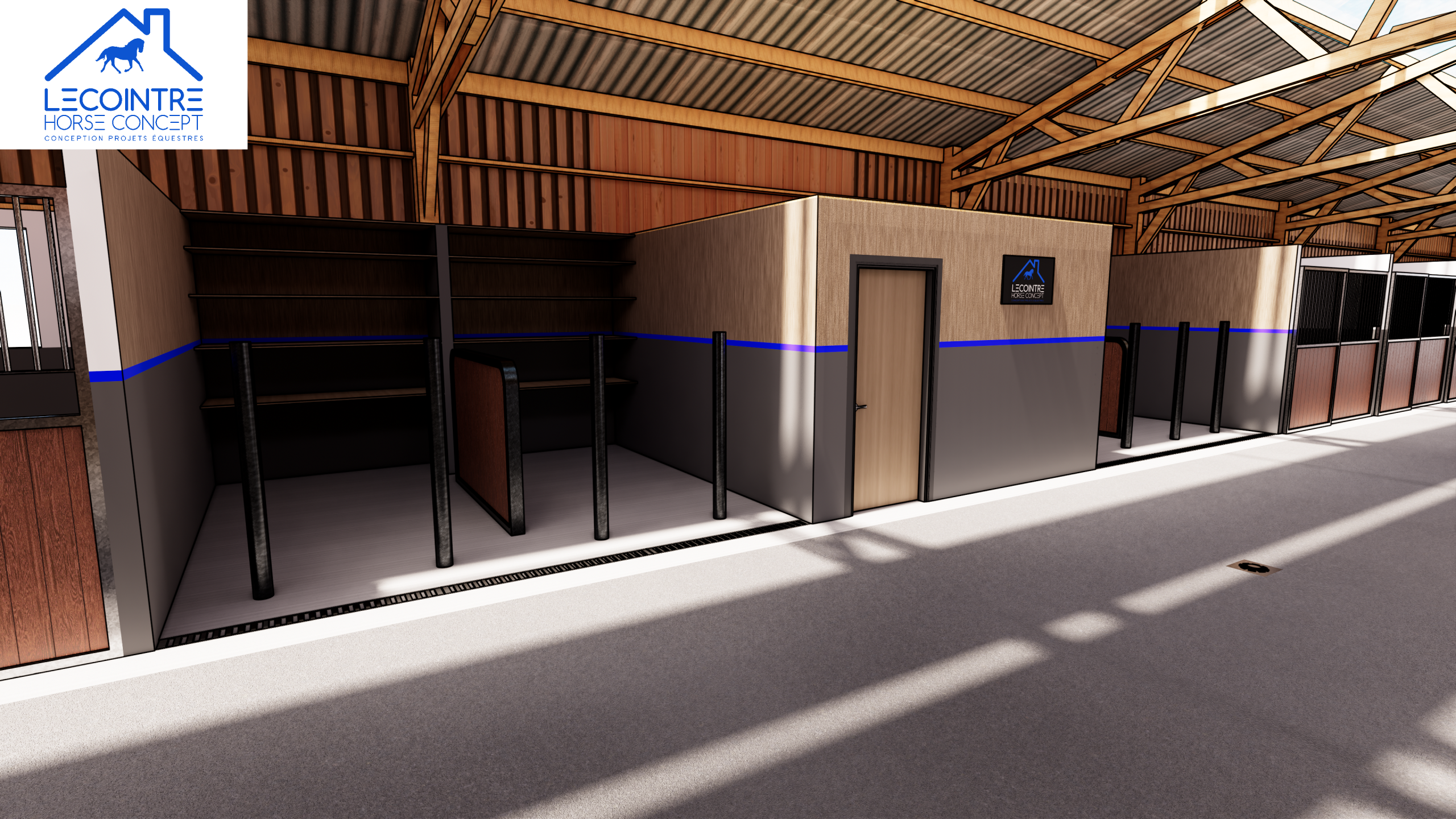 Lecointre Horse Concept accompagne son client dans la création d’une écurie moderne, pensée pour répondre aux exigences d’exploitation quotidienne et au confort optimal des chevaux.