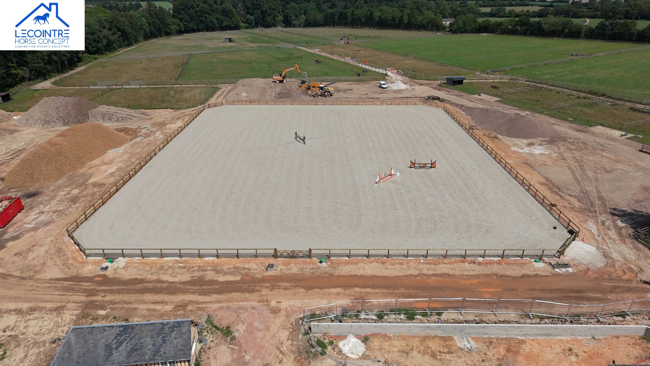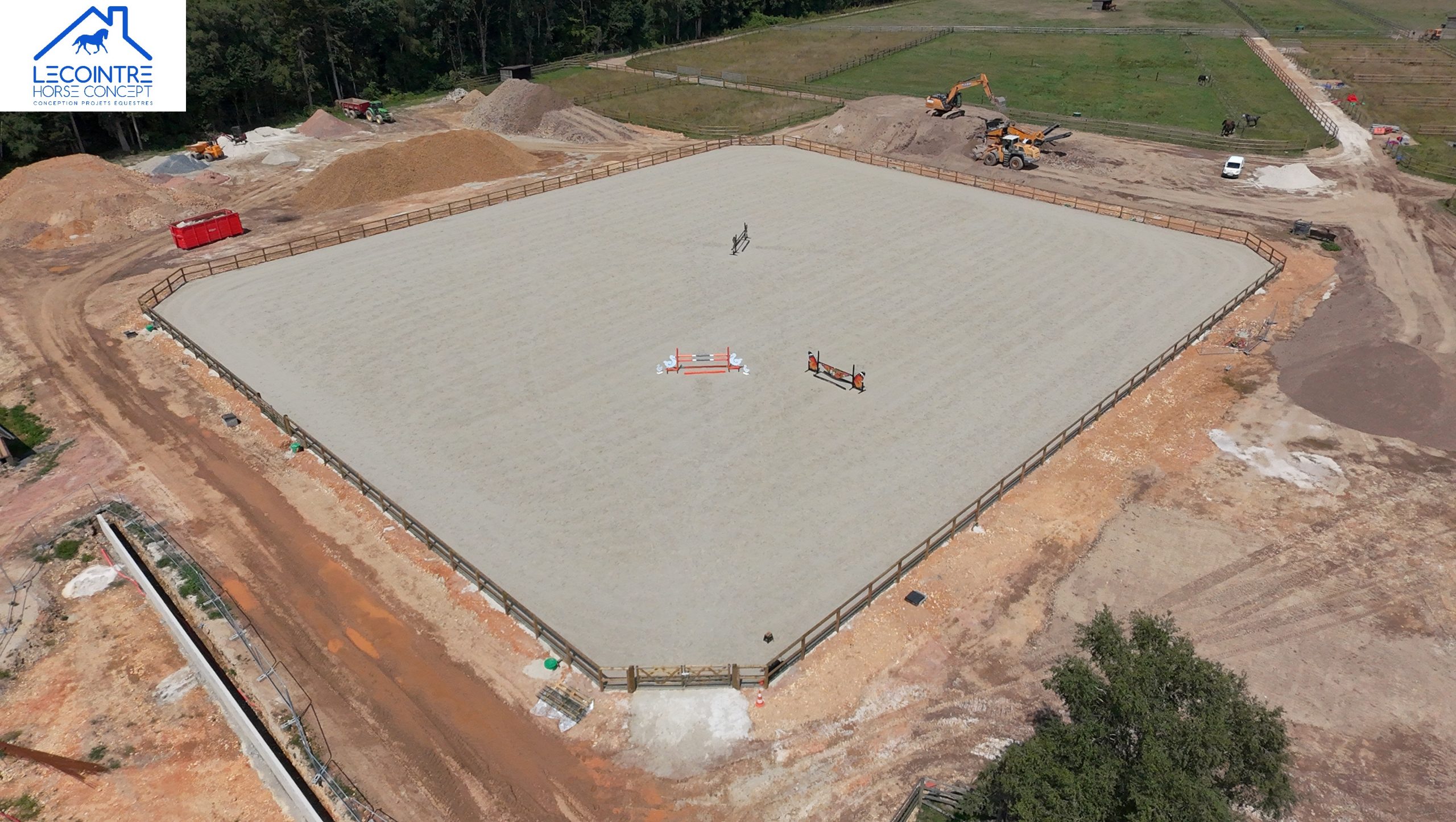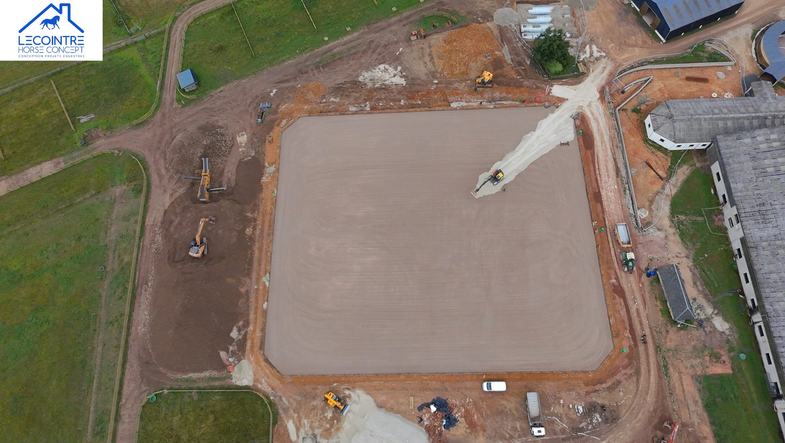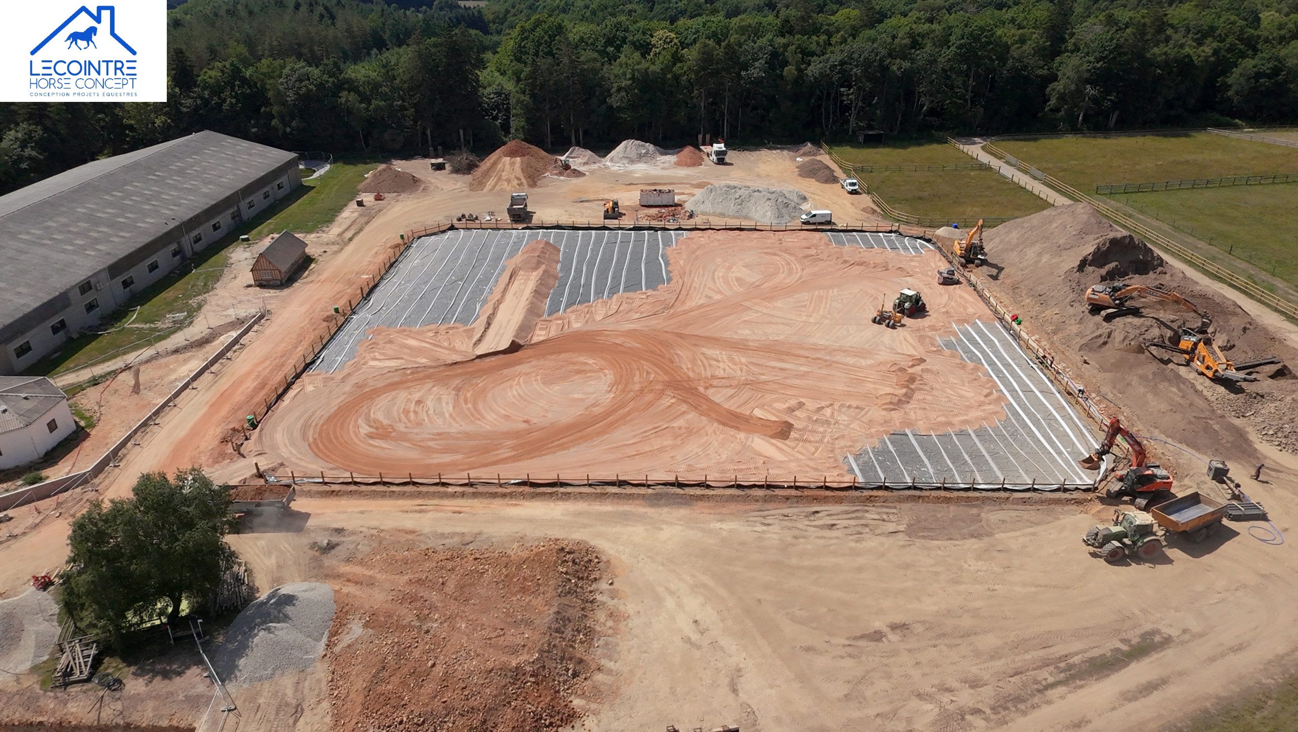 🏗️ Réalisation d’une carrière équestre 80x70m en subirrigation avec éclairage LED